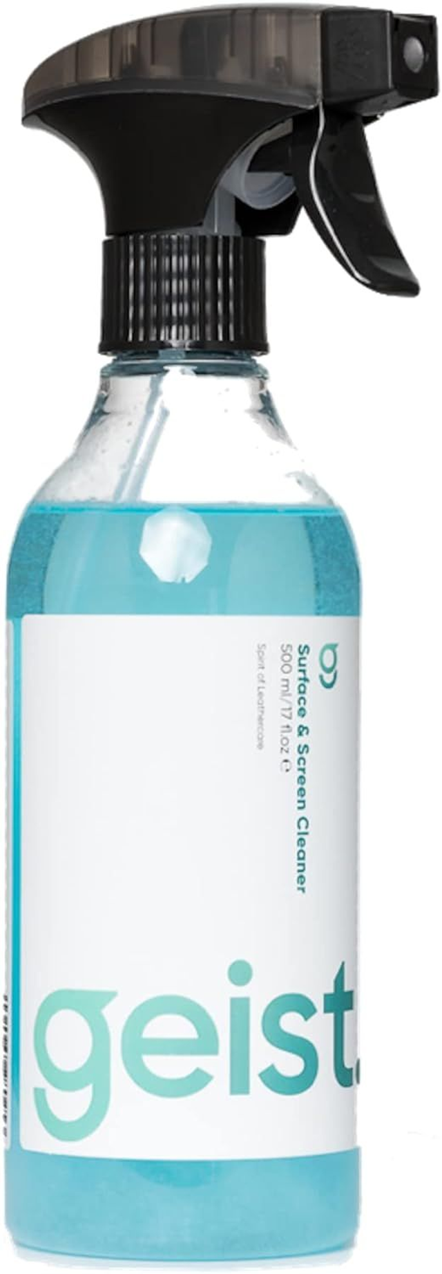 Geist Surface & Screen Cleaner est un spray nettoyant antistatique à base d’eau, idéal pour éliminer poussière, traces de doigts et salissures légères. Sa formule innovante ne laisse aucune trace, même sur les surfaces noires, mates, brillantes ou en verre, et convient parfaitement aux écrans tactiles. Polyvalent, il est sûr sur le cuir, le vinyle, l’alcantara, le chrome, le plastique, le bois laqué ou encore les matériaux composites. Inspiré de la technologie Cleanroom utilisée dans les salles blanches, il redonne aux surfaces leur aspect d’origine : éclat aux brillants, profondeur aux mats. Fabriqué à partir d’ingrédients dérivés de plantes, sans savon, silicone ni enzymes, il respecte les matériaux et ne laisse ni film gras ni résidus. Grâce à son effet antistatique, il retarde l’accumulation de poussière et garde les surfaces propres plus longtemps. Un nettoyant multifonction rapide, sûr et efficace pour la maison, le bureau ou l’automobile.